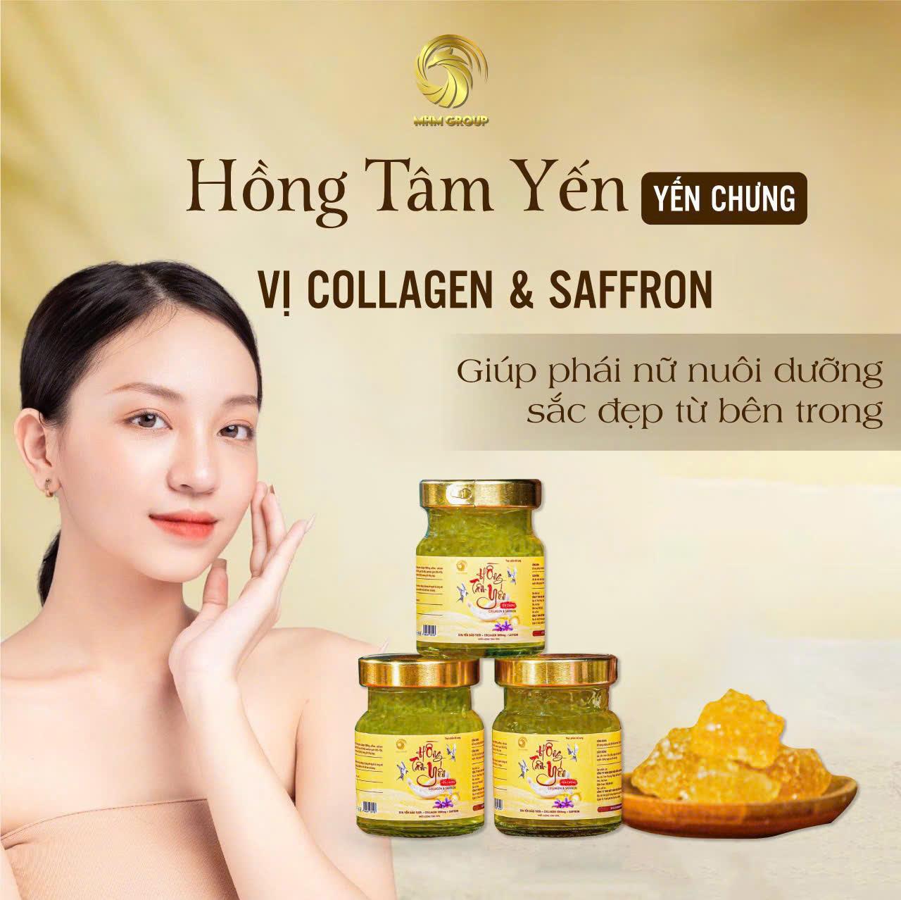 Nước Yến Chưng Collagen Saffron là thức uống dinh dưỡng cao cấp, mang lại lợi ích kép bồi bổ sức khỏe (miễn dịch, tiêu hóa, tim mạch, giảm stress) và làm đẹp da (căng mịn, giảm nếp nhăn, đều màu), hỗ trợ phục hồi cơ thể và cải thiện giấc ngủ. Sản phẩm thường có vị ngọt thanh từ đường phèn và dễ sử dụng, ngon hơn khi uống lạnh.